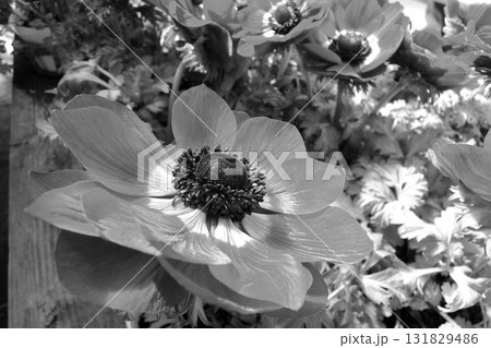 モノクロームなアネモネの花のモノクロ写真