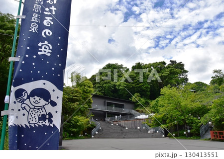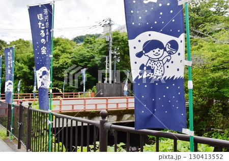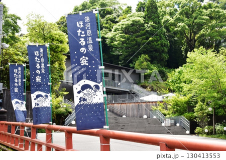 湯河原町 万葉公園湯河原惣湯玄関テラスと落合橋とほたるの苑のぼり旗