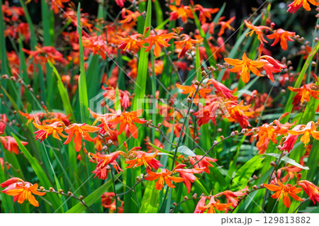 夏のガーデンで清楚に咲くヒメヒオウギスイセンの花