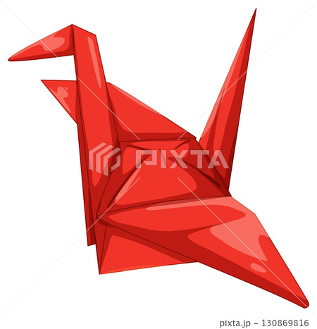 Red Origami Crane Vector Illustration on White Background