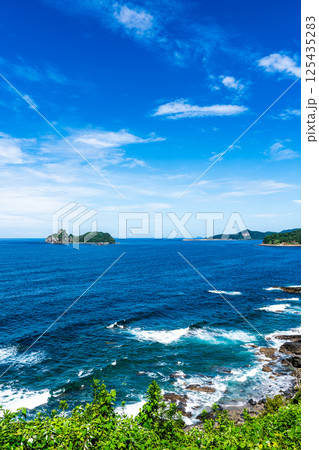 長崎県の角力灘に浮かぶ無人島の野島を空撮