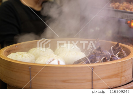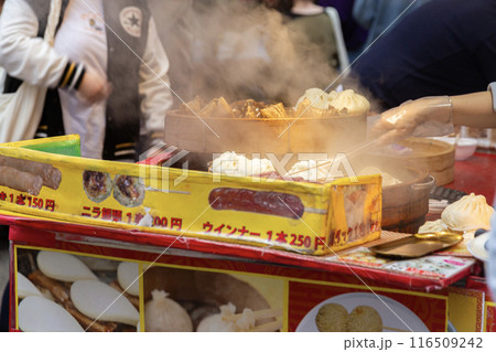 神戸市 元町 南京町 店頭に並ぶ豚まん