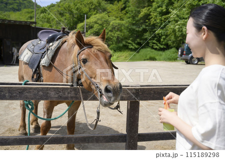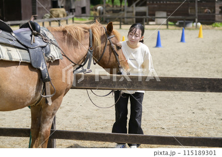 馬とふれあう女性