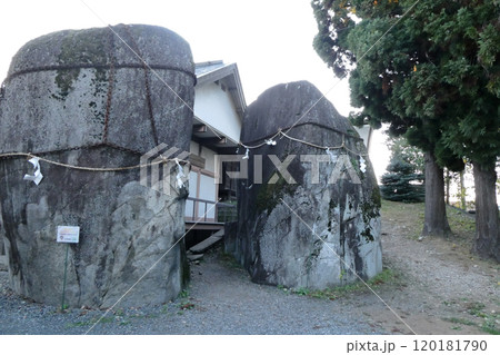 岩手県盛岡市三石神社の鬼の手形のついた石 岩手の名前の起こりになった三石神社の鬼の手形の石