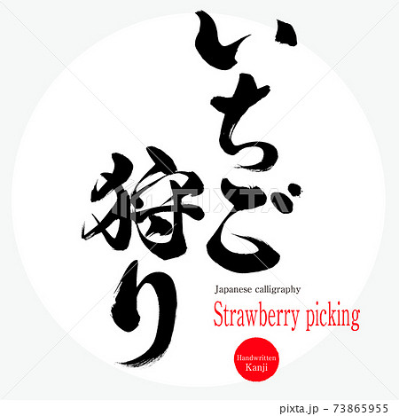 いちご狩り・Strawberry picking(筆文字・手書き)