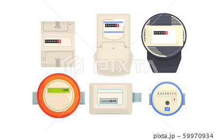 Household Electric Meter Box to Monitor the Flow of Electricity Vector Set