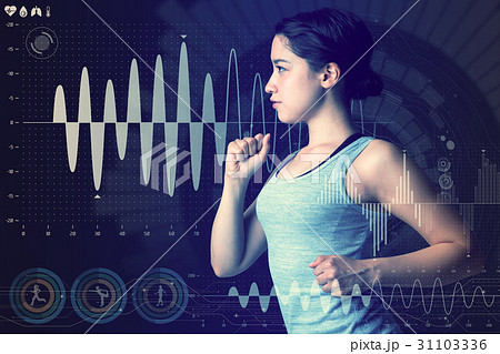 運動中にスマートウォッチを見る女性(ヘルスケア・音楽・ワークアウト)