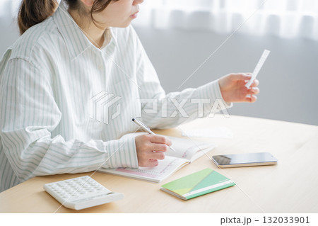 家計簿をつける女性