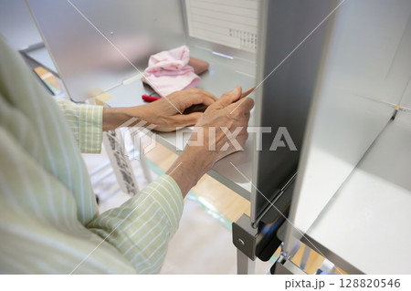 投票用紙に名前を書く女性