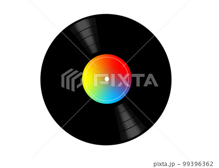 シンプルなアナログレコード盤のイラスト素材(虹色)