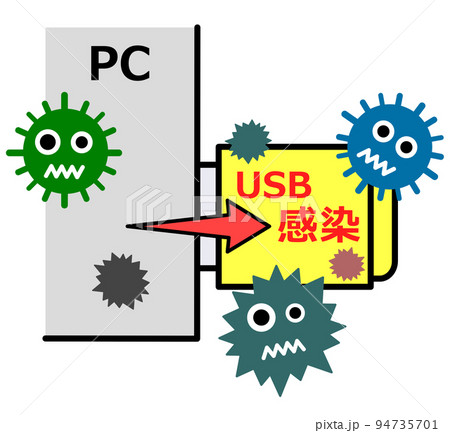 重要なデータを記録するUSBメモリがウイルス感染したイラスト