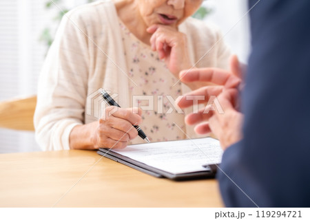 対面 契約 シニア女性 手元