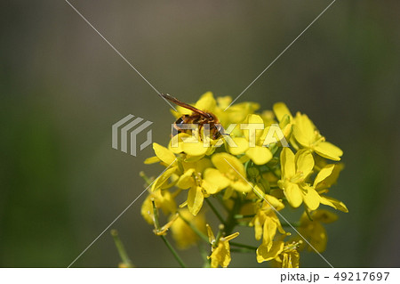 生き物 昆虫 キイロスズメバチ、吸蜜中です。この後すぐにコガタスズメバチに追い払われました