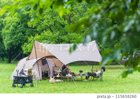 キャンプ 設営されたテント 椅子