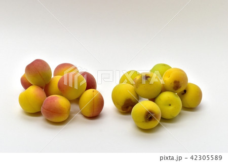 収穫して洗った傷・へこみ・斑点があるたくさんの梅 - 手作り・梅仕事のイメージ素材