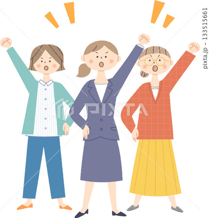 拳を上げて抗議する人々 叫ぶ 怒り 抗議デモ 反対運動 訴え シンプルな線画イラスト