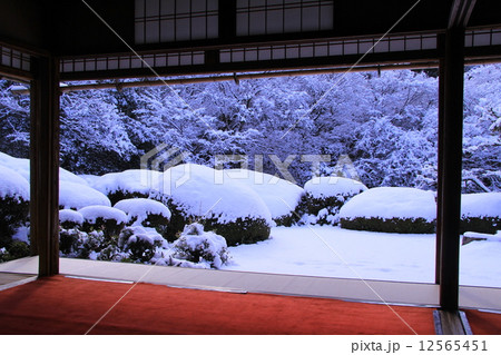 詩仙堂(京都)詩仙の間から見る庭園の雪景色