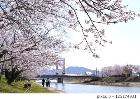 田布施川の「さくら橋」周辺で桜満開