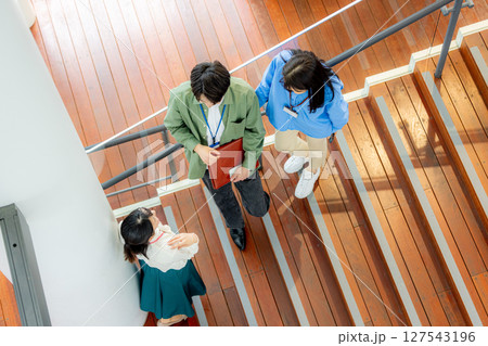 階段にいるビジネスマンの男女