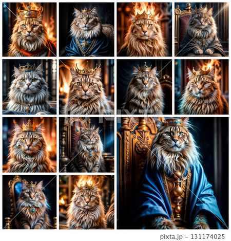 A majestic purebred royal cat proudly looks at the camera, lord and master. Collage