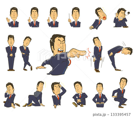 表情豊かなサラリーマンのイラストセット。驚き、落ち込み、喜びなど。