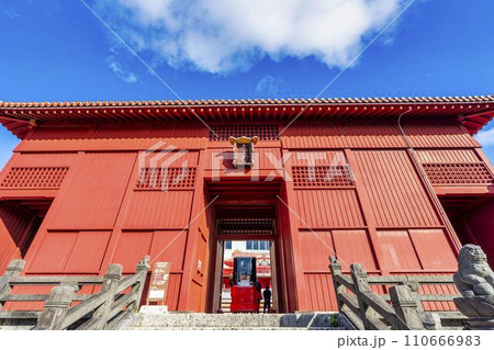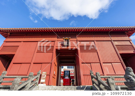 沖縄の観光名所である首里城公園の奉神門(ほうしんもん)