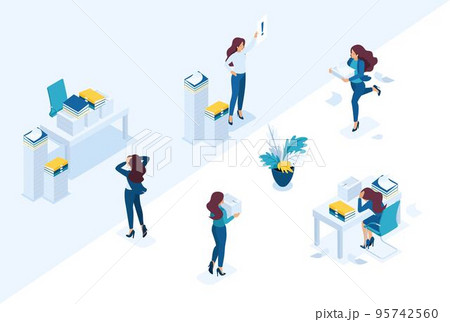 Isometric Bright site concept The head of the audit company swears at subordinates, the delivery of the tax report. Concept for web design