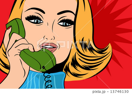 pop art cute retro woman in comics style talking on the phone