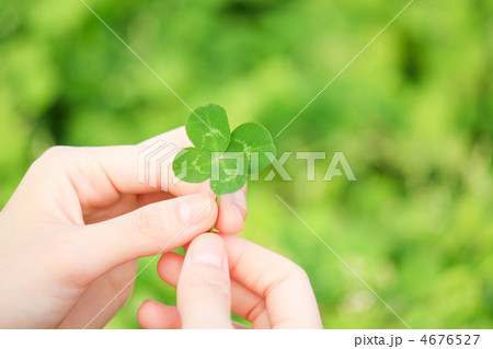 四つ葉のクローバー/植物/手に持つ/夢と希望の象徴/未来の愛