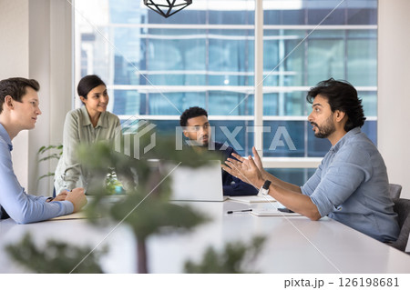 Diverse colleagues discuss business ideas in office