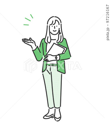 手を添えて説明をするビジネスパーソンのイラスト素材