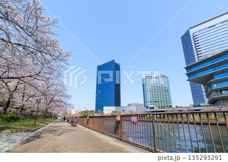 大阪城公園の桜と大阪ビジネスパーク(大阪府大阪市中央区)