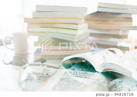 山積みの本 読書 小説 書籍 出版物 積読 図書