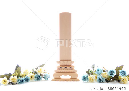 白木のお位牌とフラワーアレンジメント1