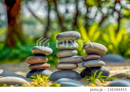 Vibrant stacked stones display earthy textures and patterns for interior design and zen inspiration