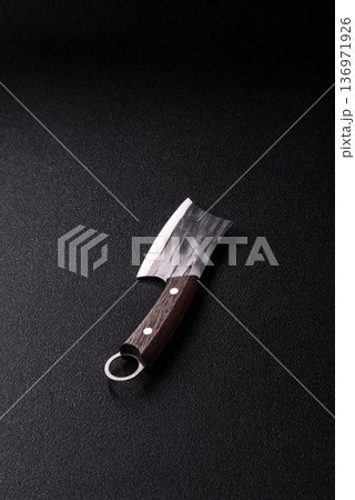 A kitchen cleaver or butcher's knife for cutting meat. A butcher's cleaver