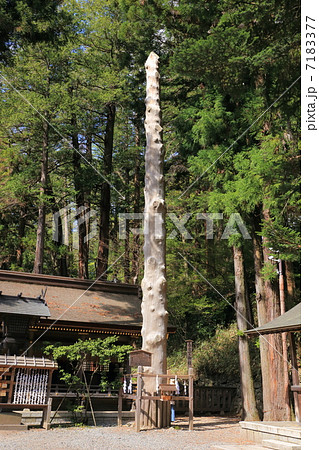 信州 諏訪大社の御柱(おんばしら) 日本三大奇祭のひとつ「御柱祭」で立てられる御神木(モミの大木)