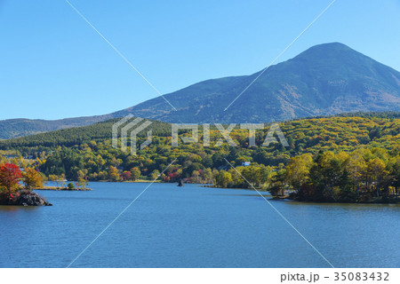 長野県 青空の白樺湖からの蓼科山