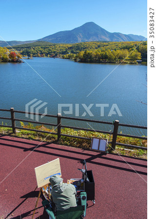 女神湖:新緑と枯木と蓼科山 北佐久郡立科町