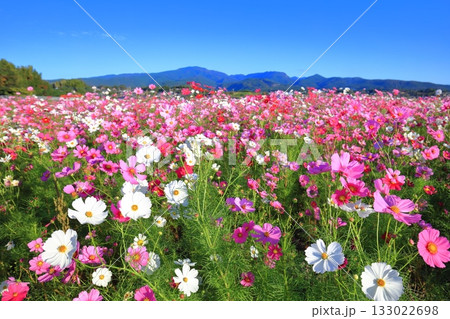【長崎県】快晴の自然干陸地フラワーゾーンの満開のコスモス