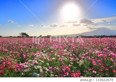 【長崎県】自然干陸地フラワーゾーンのコスモスと朝日