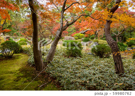 三重県 桑名 諸戸氏庭園の秋の一般公開 紅葉の庭 敷石