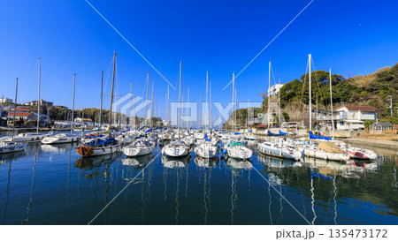 ヨットハーバーに停泊するヨット(神奈川県三浦市諸磯)