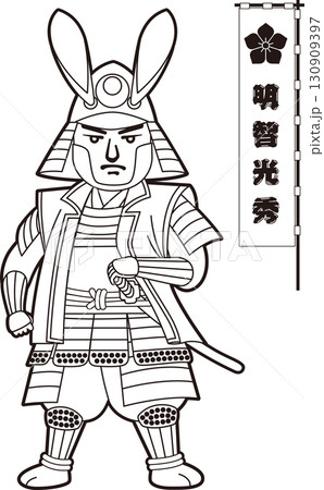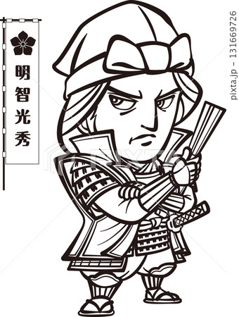 武装して立つ明智光秀【3頭身・白黒・ベクター】