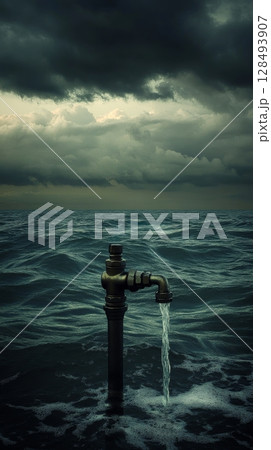 Glowing heart-shaped formation emerging from ocean waves with luminescent edges against dark seascape. Love and nature concept