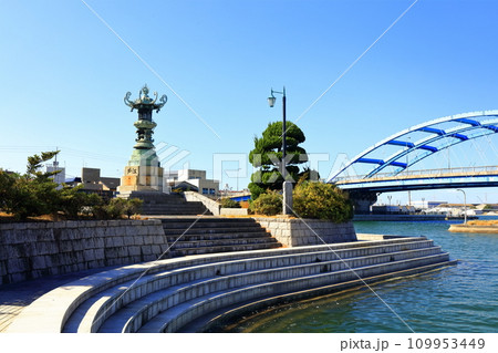 【香川県】丸亀港にある金毘羅講燈籠(太助燈籠)