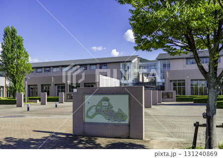 東京外国語大学 研究講義棟の入口 夏の青空 東京都府中市
