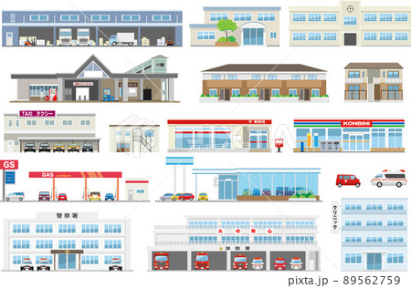 建物シリーズ4 公共施設1 カラーラインアイコンのセット