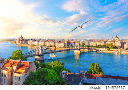 Skyline panorama of Budapest with Chain Bridge over the Danube River, Hungary