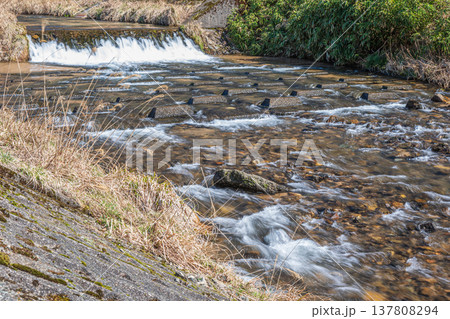 川の落差工の流れのアップ